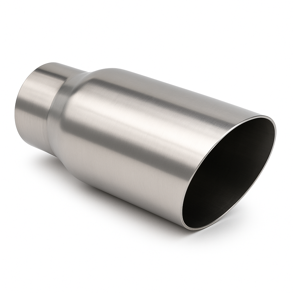 2in Inlet, 2 1/8in Outlet, 8in Long, Round, Angle Cut (Plain), Stainless Steel